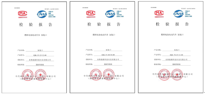 本次順利通過國家強檢認證,標志著未勢能源加氫口產品已完全滿足市場準入條件,具備了生產銷售資質,同時也標志著未勢能源加氫口在產品質量和安全性能方面,已處于業內領先水平。